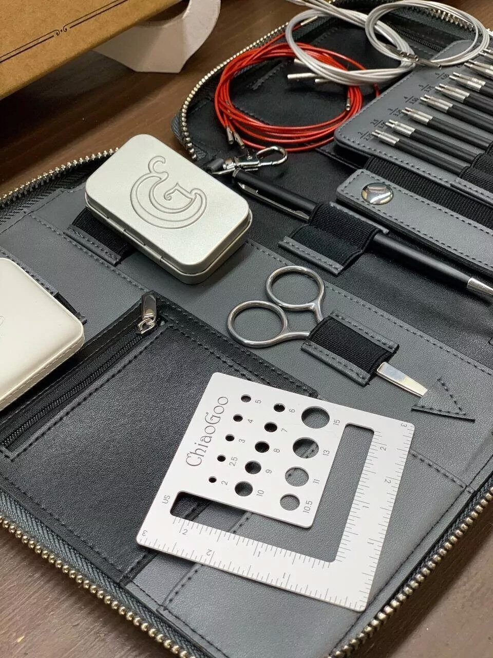 Набор спиц ChiaoGoo Forté 2.0 – новинка бренда, представлюяющий из себя набор деревянных/карбоновых спиц с металлическими кончиками, и большим количеством аксессуаров, в удобном лаконичном чехле.