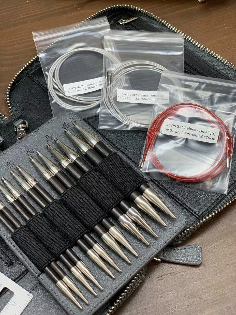 В набор также входят разнообразные кабели SWIV360™ и TWIST Red Lace, изготовленные из стали, покрытой нейлоном, что обеспечивает прочность и предотвращает спутывание, делая процесс вязания максимально комфортным. Кабели SWIV360™ с системой соединения, вращающейся на 360 градусов, добавляют дополнительный уровень удобства, позволяя спице свободно вращаться во время вязания.